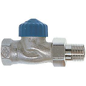 Termostatstyret radiatorventil uden forindstilling til 1-strengsanlæg. Med stor Kvs-værdi. Anvendelsesområde: Vandbårne varme- og køleanlæg. 1-strengsanlæg med pumpecirkulation. 2-strengsanlæg med naturlig cirkulation. Trykklasse: PN 10 Max. differenstryk: DN 10 (3/8) 6 mVs = 60 kPa = 0,6 bar. Øvrige dimensioner: 2,5 mVs = 25 kPa = 0,25 bar. Max. arbejdstemperatur: 120°C. Min. arbejdstemperatur: -10°C. Materiale: Ventilhus = Rødgods O-ringe og kegle = EPDM gummi Returfjerder og spindel = Rustfrit stål Overfladebehandling = Ventilhus og forskruning forniklede Mærkning: Pil for strømningsretning, dimension . RVT-HF leveres med blå beskyttelseshjul. Tilbehør: TA?s standard tilbehør passer ikke på ovennævnte ventiler. Anvend altid HEIMEIER?s kompressionskoblinger, mærket THE