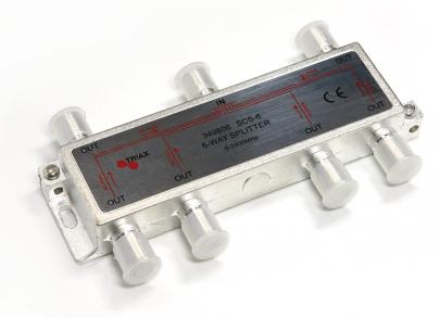 SCS 6 - 6-fordeler Triax SCS fordeler er velegnet til SAT-IF og MATV distributionsnetværk. Frekvensområde 5-2400 MHz Høj isolation Lavt indsætningstab Høj kvalitets trykstøbt hus, tin (Sn) belagt EN 50083-2 & EN 60728-4