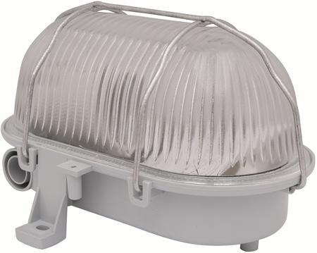 Væg/Loftsarmatur i termoplast. Kapslet. Glasskærm med stålgitter.
