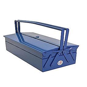 Stærk og professionel værktøjskasse udført i stål. Kassen åbnes i en arbejdsgang ved at trække håndtagene til hver side. Er forsynet med beslag for hængelås.* Mål L 550 mm x B 250 mm x H 180/100 mm* Vægt 5,7 kg